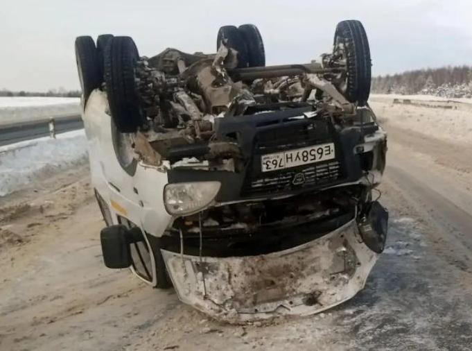 На трассе в Пензенской области перевернулся микроавтобус. ФОТО